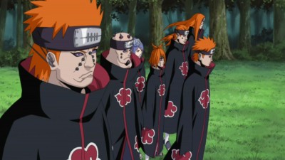 Pain et Konan arrivent à Konoha. Ils se séparent en deux groupes, un pour la diversion (Shuradô, Chikushodô et Gakidô) et l'autre pour les recherches (Tendô, Ningendô, Jigokudô et Konan). Ils s'infiltrent, commencent à faire des dégâts dans Konoha, et recherchent Naruto. Tsunade déclenche alors l'état d'urgence et cherche à faire revenir Naruto.